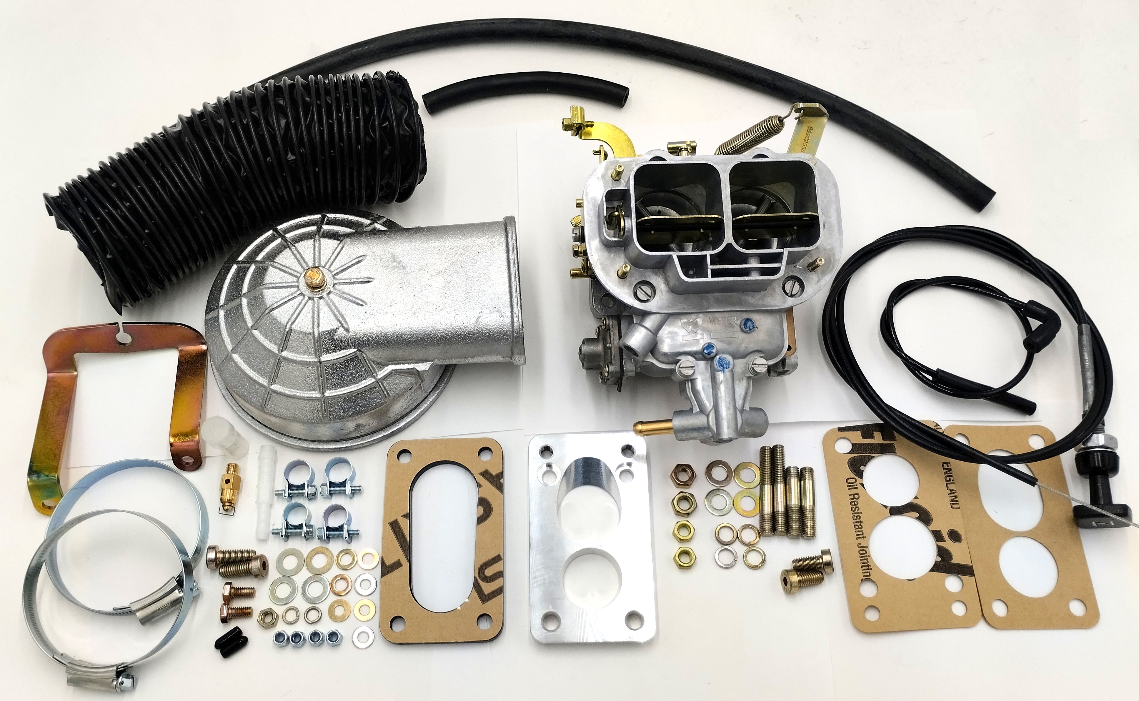 Using a genuine Spanish Weber 32/36 manual choke carburettor, our kit features all the nescessary